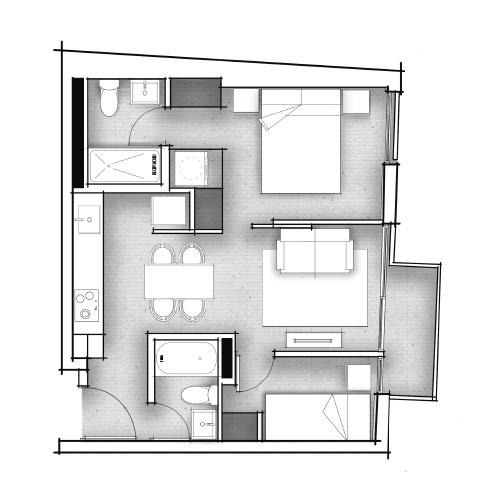*Texto legal: 1.-Las superficies antes declaradas corresponden a las superficies proyectadas, las que podrán presentar diferencias menores con aquellas que resulten una vez ejecutado el proyecto, dentro de los márgenes de error tolerados en el marco de las buenas prácticas constructivas. 2.-Municipal: Superficie útil de acuerdo a la que señala el Artículo 1.1.2. del Titulo 1 de la OGUC, conforme a la LGUC y a la DDU 361 de 16.06.2017. Esta superficie se mide hasta el eje de los muros o líneas divisorias entre unidades y la superficie común y hasta la cara exterior de los muros perimetrales. 3.-Construido: corresponde al 100% de la superficie de losa construida medida a los ejes de muros o cara exterior de muros perimetrales, según corresponda. 4.-Las superficies de terrazas pueden variar según piso u orientación, inclusive a versiones sin terraza.